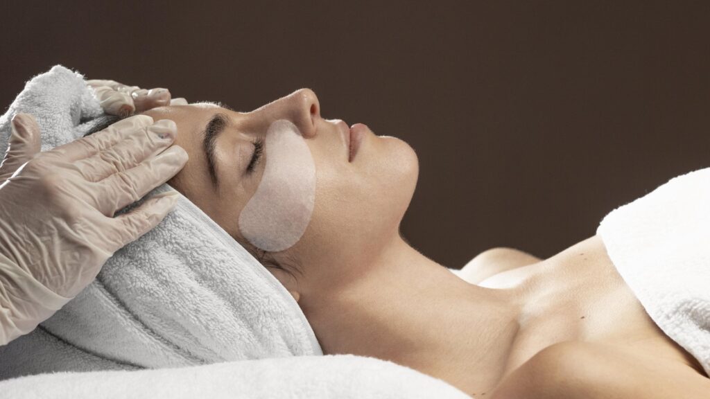 a woman with a facial mask on her face